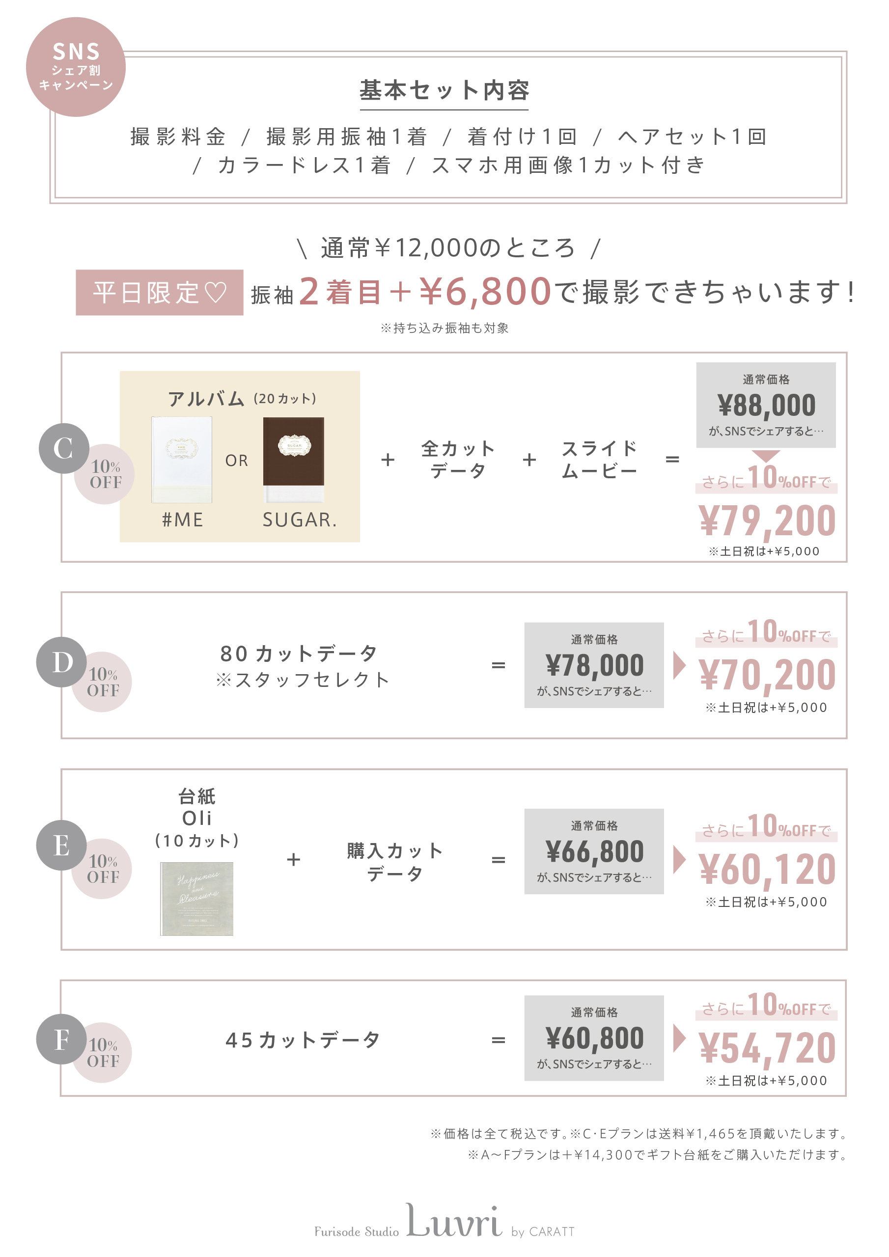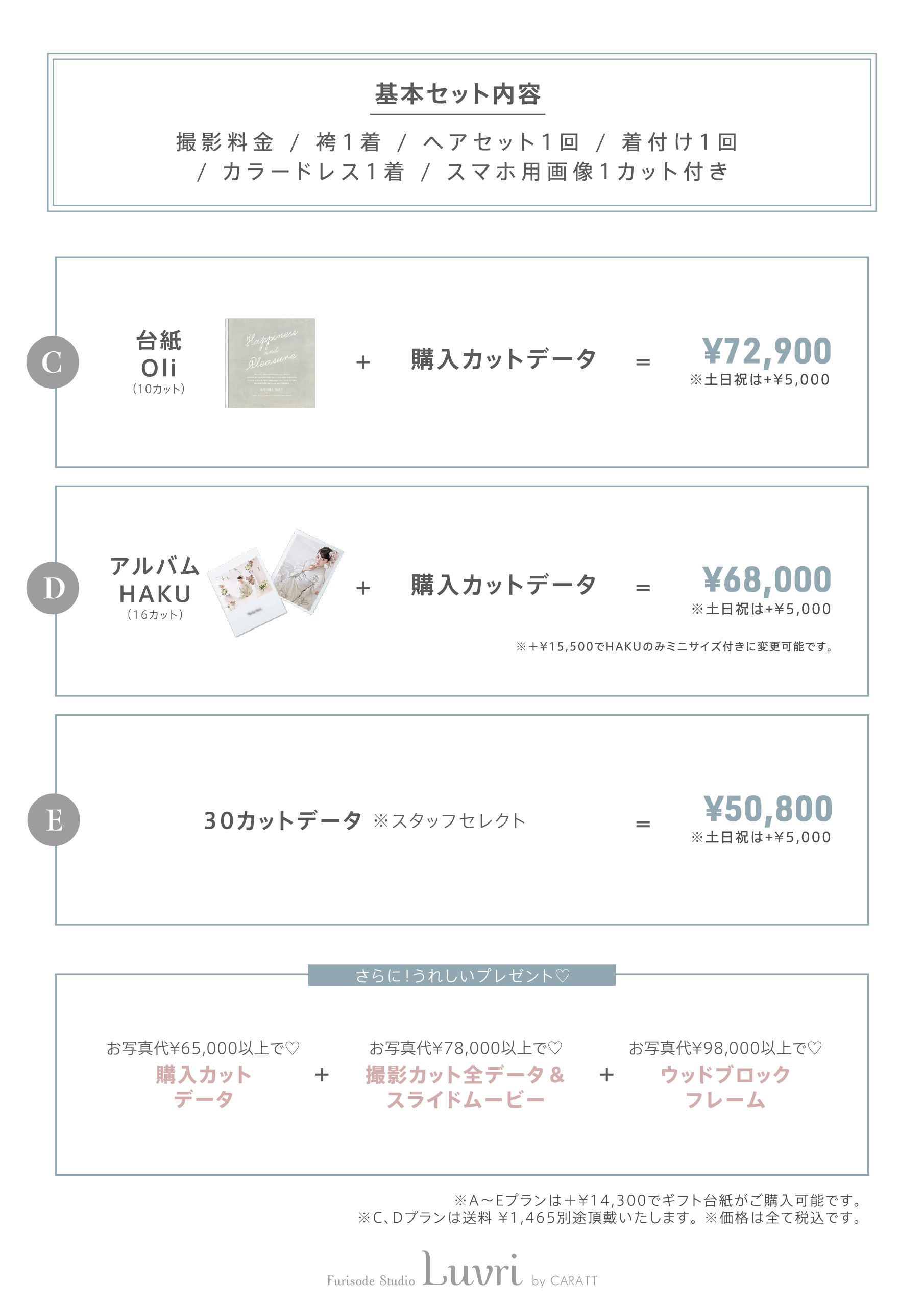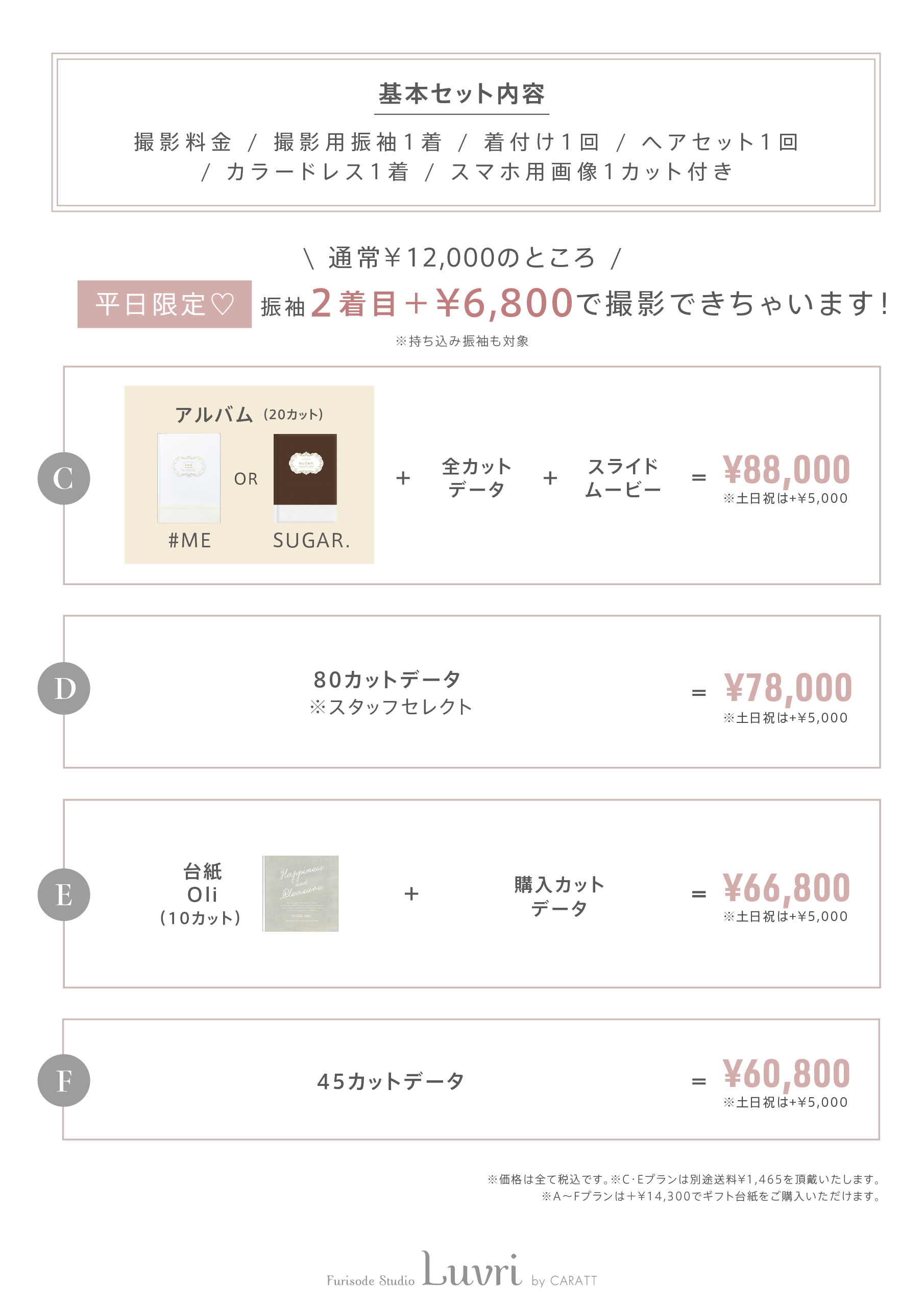 ※着用いただく衣装により0円〜22,000円の追加料金を頂戴いたします。